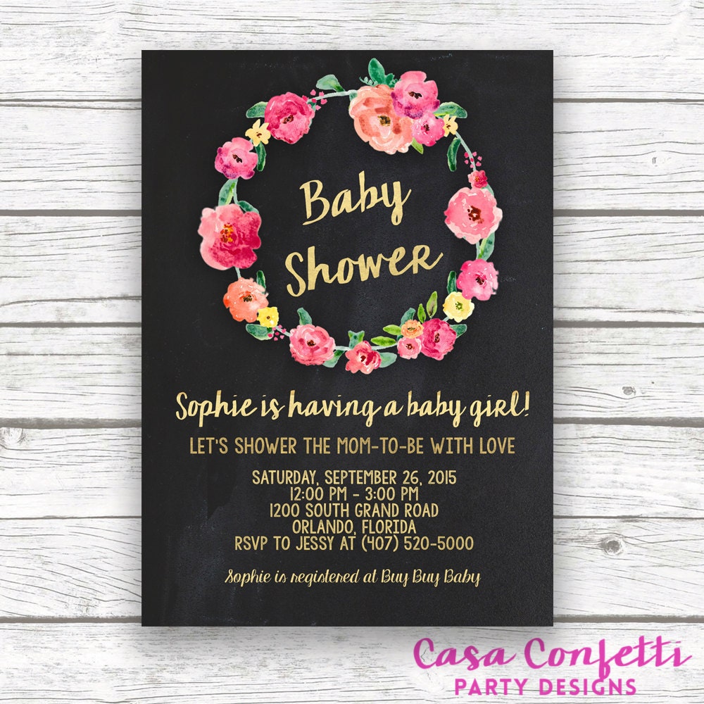 Pink Yellow Gerbera Daisy Sip N See Baby Shower Personalized Invite